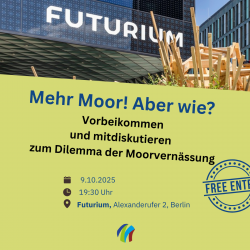 3/10/2025 „Mehr Moor! Aber wie?“ – unter dem Titel laden Futurium, die Joachim-Herz-Stiftung und das Greifswald Moor Centrum am 9. Oktober im Herzen Berlins. Moore sind zentrale CO₂-Speicher und gleichzeitig umstrittene Nutzflächen. Wie lassen sich Klimaschutz, Landwirtschaft und lokale Interessen vereinen? Diese Frage steht im Mittelpunkt des Expertengesprächs mit Besucherbeteiligung ab 19:30 Uhr.