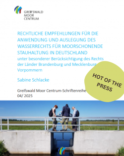 27/10/2025 Moore sind zentrale Akteure im Klimaschutz, doch ihre Wiedervernässung scheitert oft an rechtlichen Hürden und gesetzlichen Rahmenbedingungen. Ein neues Gutachten „Rechtliche Empfehlungen und Auslegung des Wasserrechts für moorschonende Stauhaltung in Deutschland“ erstellt von Prof. Dr. Sabine Schlacke, analysiert, wie das Wasserrecht in Deutschland besonders auch für nachhaltige Moornutzung angepasst werden muss. Die Kernaussage: Moorschonende Stauhaltung ist essentiell für den Erhalt von Mooren als CO₂-Speicher und für die Anpassung an den Klimawandel und muss daher gefördert werden - insbesondere in den Bundesländern Brandenburg und Mecklenburg-Vorpommern. Das Gutachten enthält Handlungsempfehlungen für Politik und Verwaltung, um Rechtssicherheit für Landnutzer:innen und Naturschutz zu schaffen.